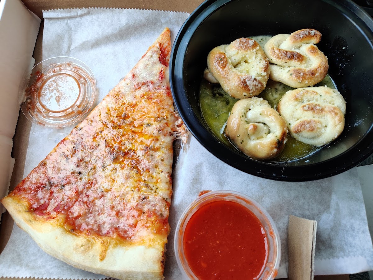 Got the two slices of pizza and a diet soda as I waited for my cousin to finish up with her dental appointment. Convenient location. Previous visit - Seat your self, fast service, friendly staff. I got the O.I.P. cheese steak and raspberry tea. Tasted great!